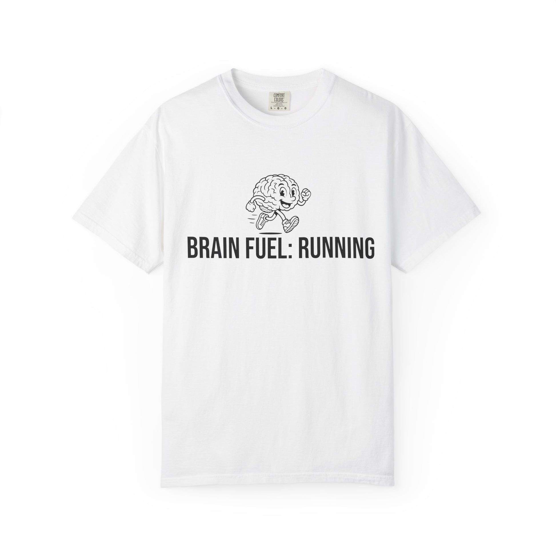 Where mind meets mileage. This playful yet sharp design features a cartoon brain laced up in running shoes, mid-sprint—because running isn’t just for the body, it’s fuel for the mind. Paired with the bold caption “Brain Fuel: Running”, this shirt is made for those who hit the pavement not just to sweat, but to think clearer, dream bigger, and go farther.
