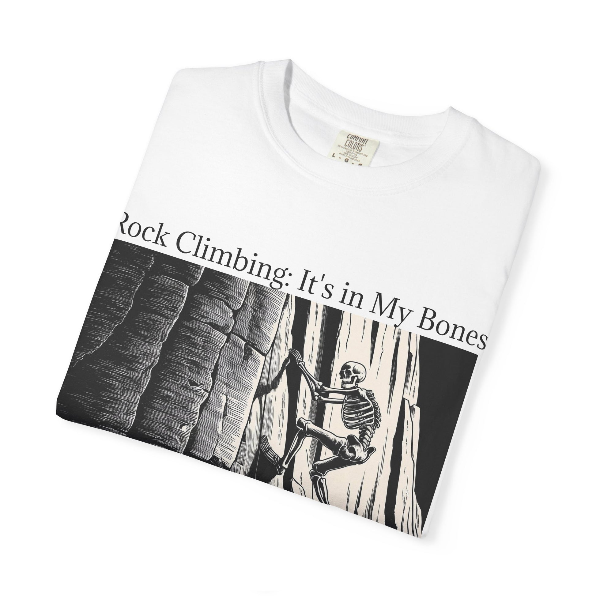 Celebrate your passion for climbing with a design that speaks to your core—literally. Featuring a striking illustration of a skeleton mid-ascent, this shirt proudly declares "Rock Climbing: It's in My Bones." It’s a bold and stylish tribute to those who live for the climb, whether on rock, wall, or boulder.