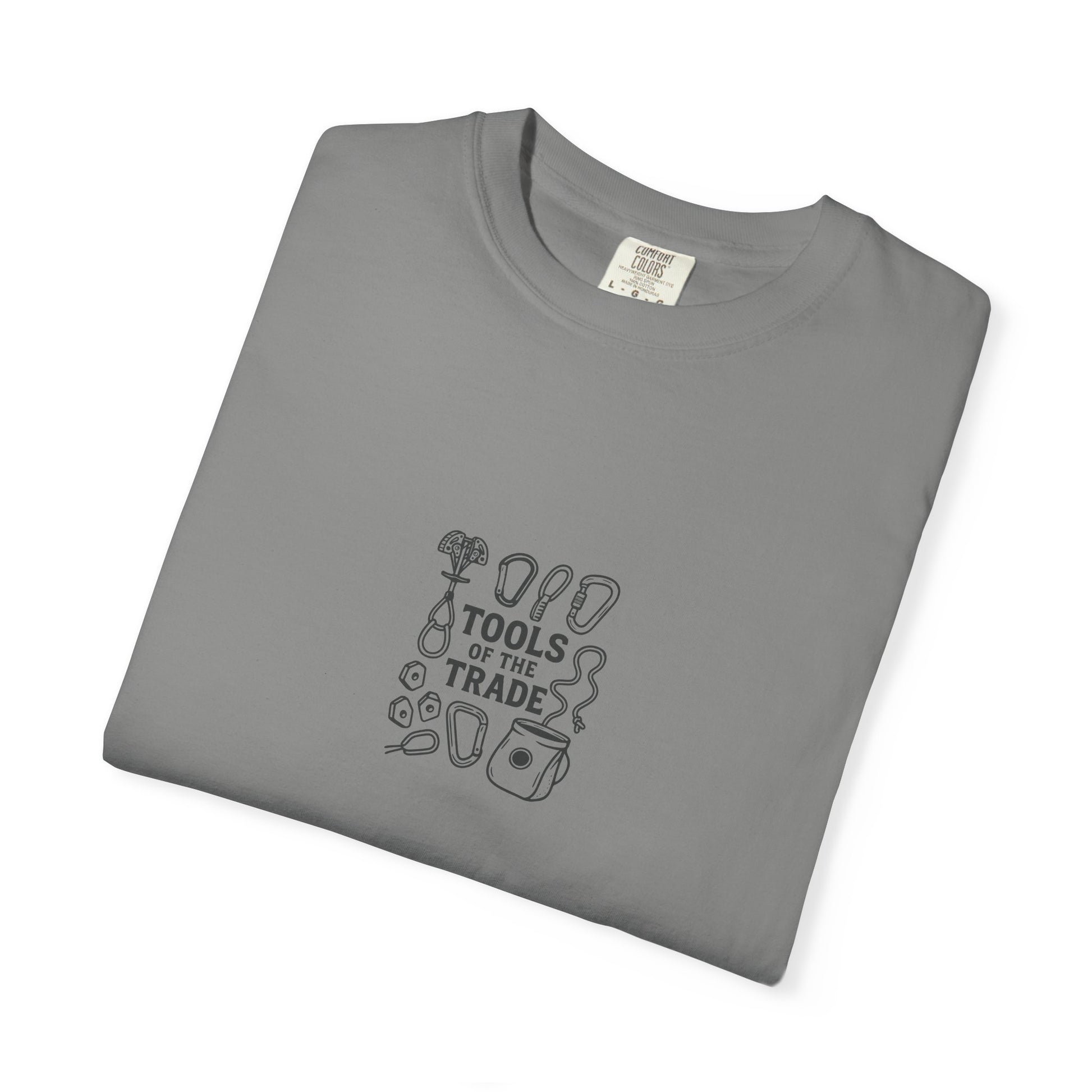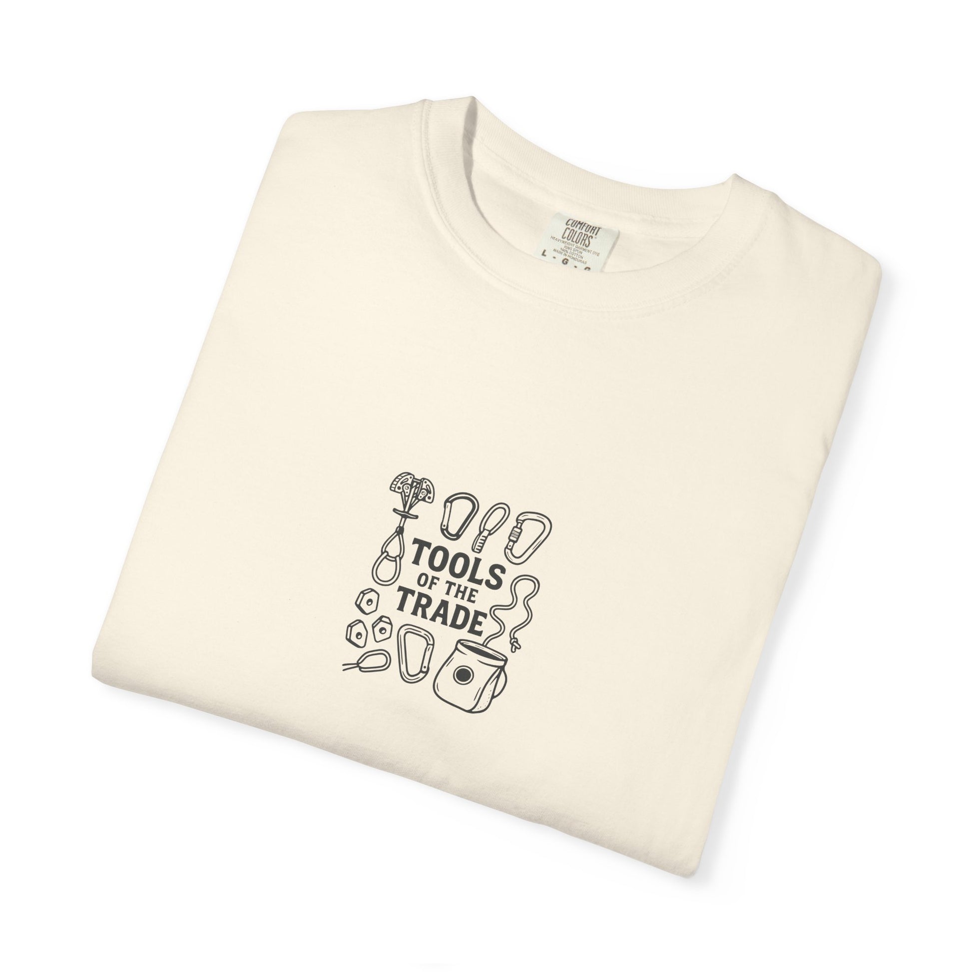 The Tools of the Trade Tee brings your passion for climbing into sharp focus — a clean, stylish design featuring all the essentials: cams, nuts, carabiners, and chalk bag — everything you need to reach new heights.